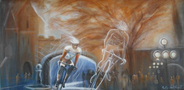 De scènes sportives jusqu'à la poésie, elle nous invite à partager sa vision de la "petite reine", où elle parvient à exprimer avec sa palette si personnelle de ses teintes douces, toute la puissance des compétiteurs.