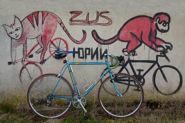 Artiste Italien, Yuri qui voit le vélo comme l'allégorie de la vie et prône une vélorution internationale, illustre parfaitement notre philosophie commune, qui est de faire du vélo un art de vivre, en abolissant toutes les frontières !